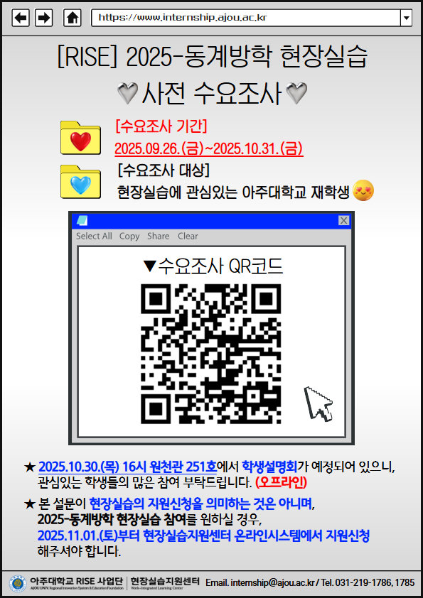[재공지] [RISE] 2025-동계방학 현장실습 사전 수요조사 진행 안내(2025.09.26.(금)~2025.10.31.(금))