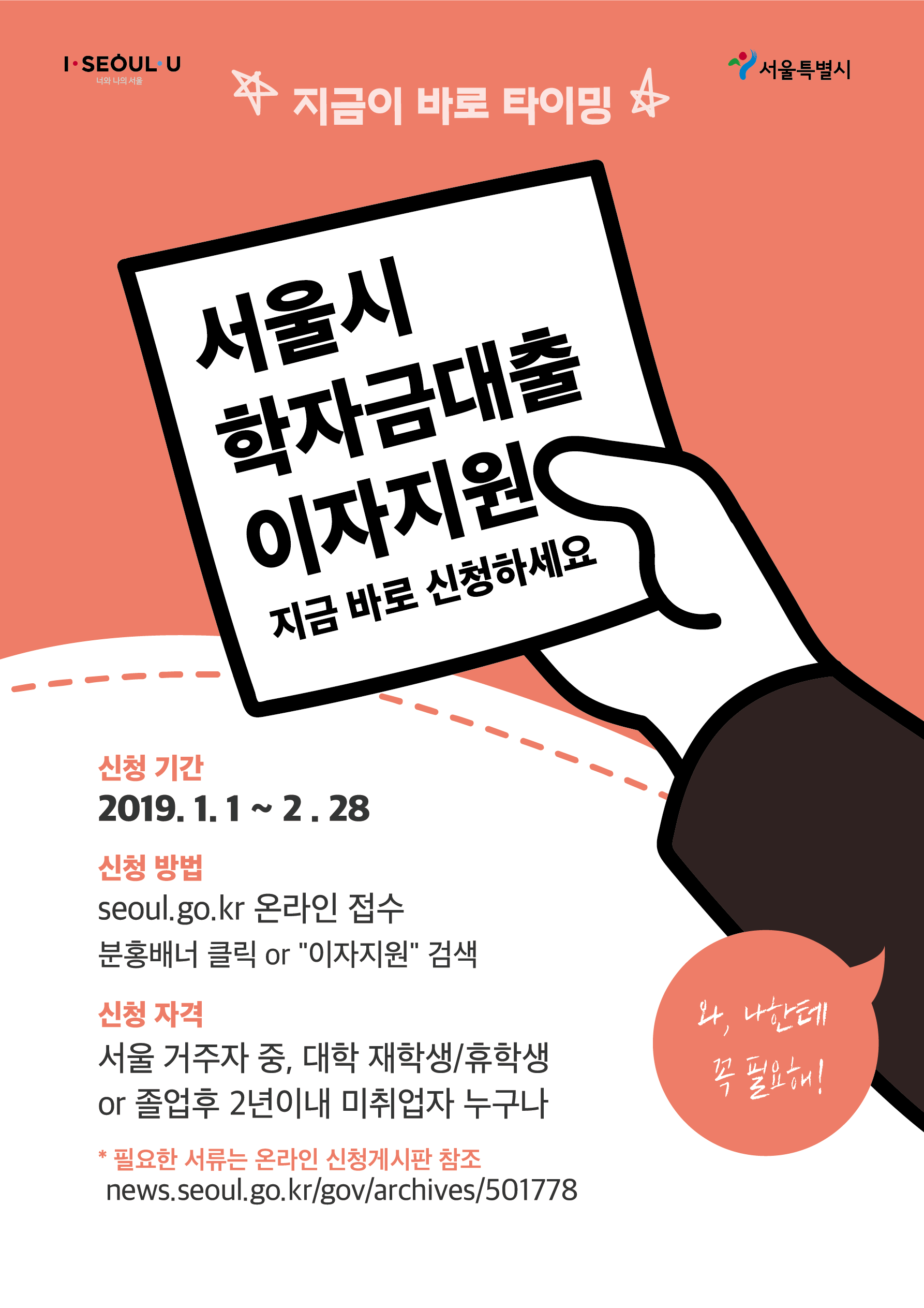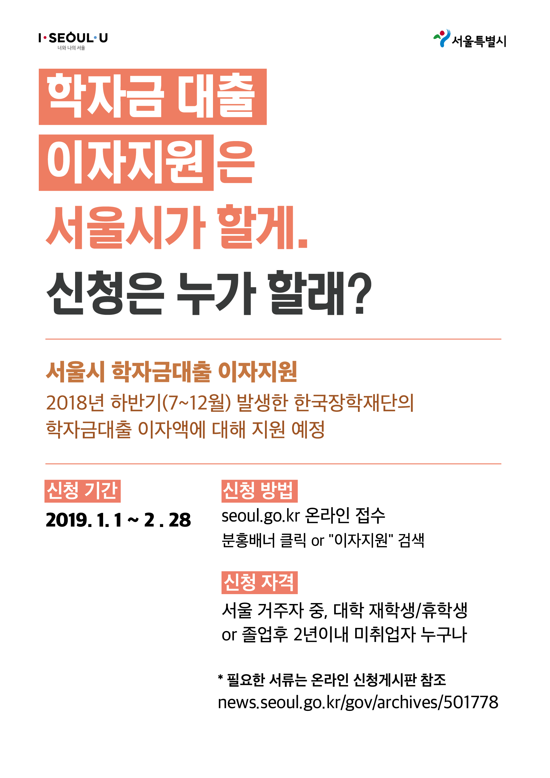 2018년도 하반기 서울시 대학생 학자금대출 이자지원 신청안내