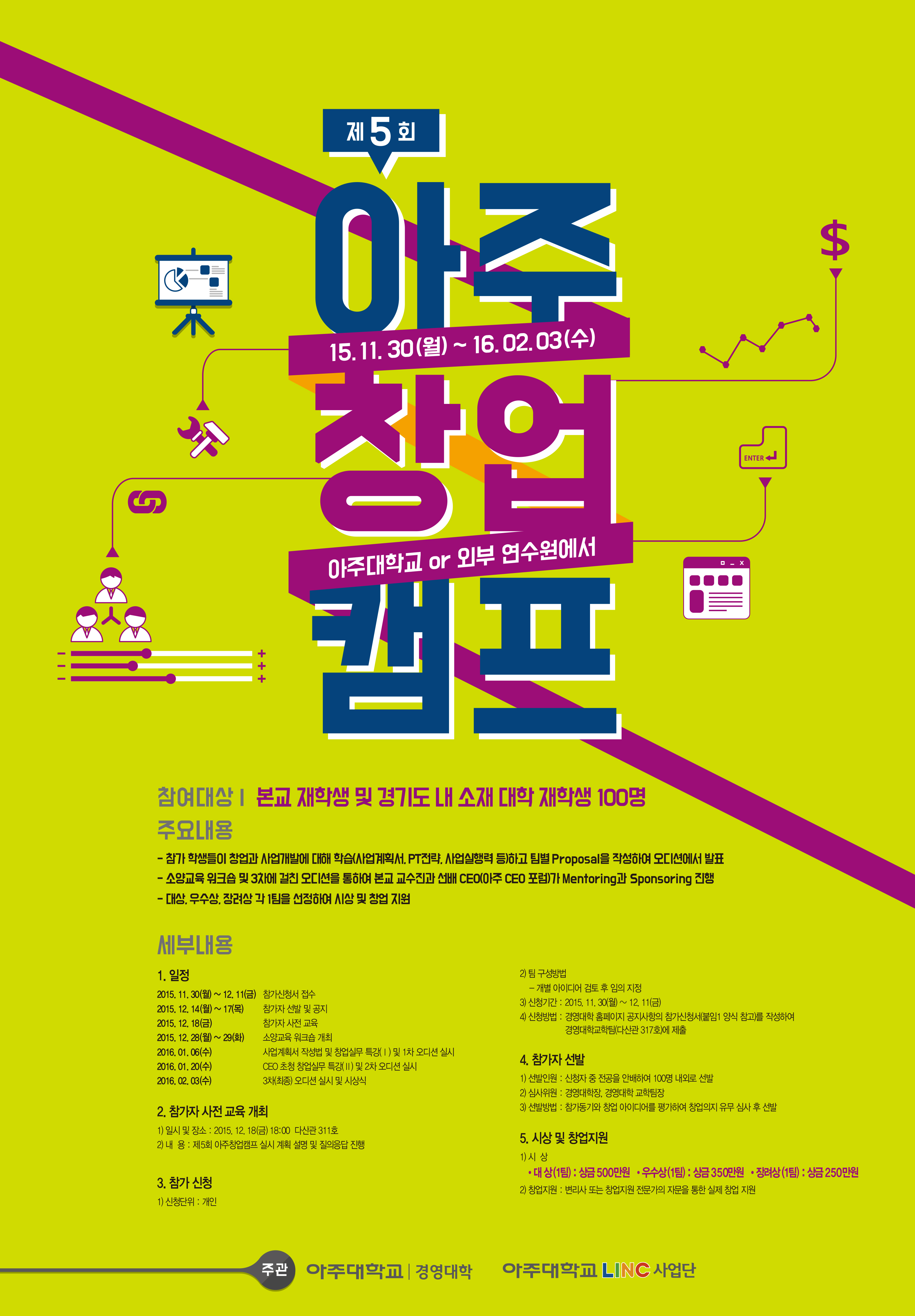제5회 아주창업캠프 참가자 2차 모집 - 학점인정프로그램(3학점)
