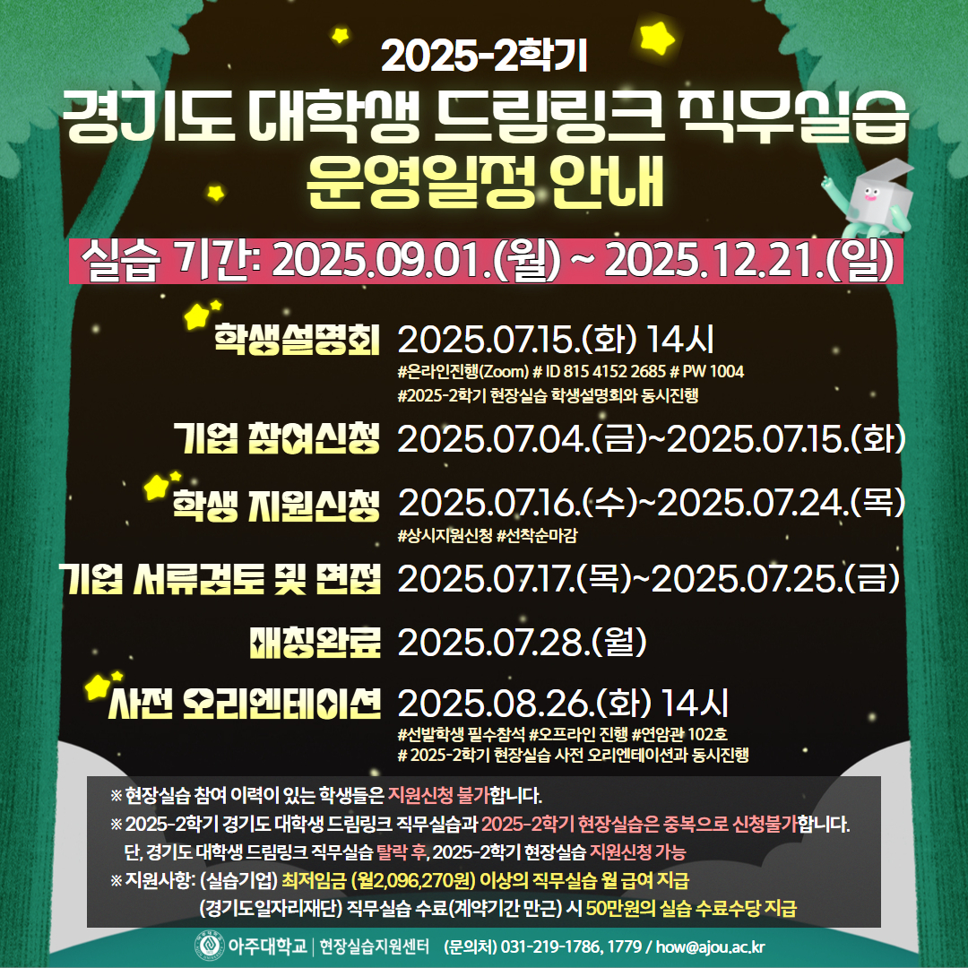 [재공지] 2025-2학기 경기도 대학생 드림링크 직무실습 운영 일정안내(★학생 지원신청 2025.07.16.(수)~)