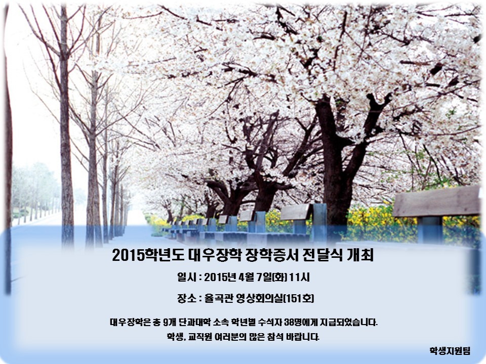 | 298 | 장학 | 학생지원팀 | 2015-04-07 | ||
