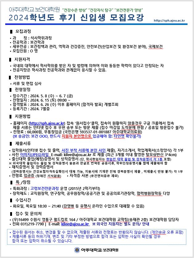 | 21278 | 입학 | 보건대학원교학팀 | 2024-05-14 | ||