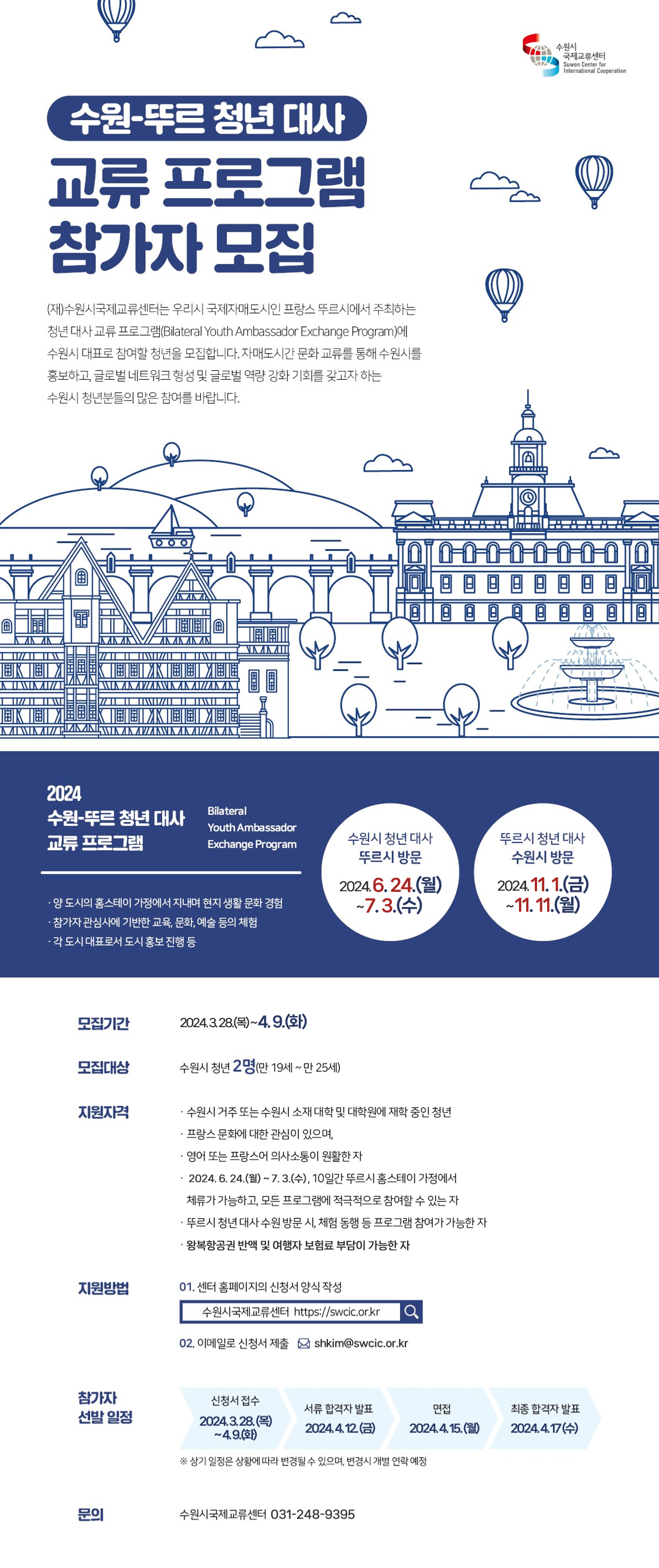 [수원시 국제교류센터] 2024 수원-뚜르 청년대사 프로그램 참가자 추가 모집 (3. 28. ~ 4. 9.)